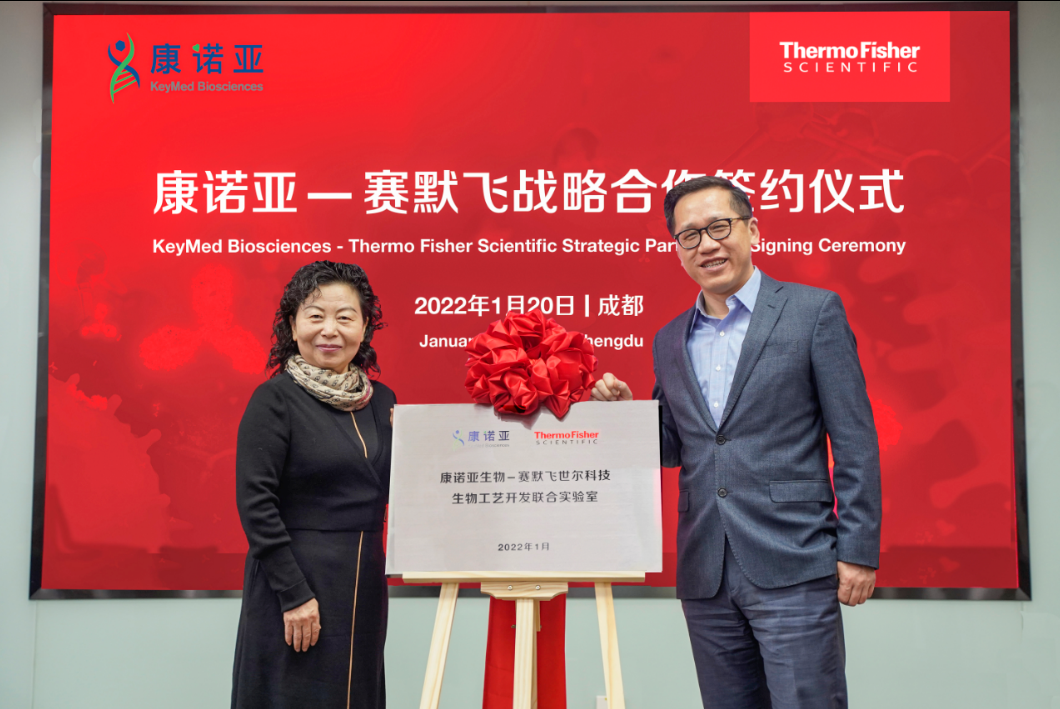2022年1月20日,康諾亞(香港聯交所代碼:02162)與賽默飛世爾科技(以下簡稱賽默飛)簽署建立戰略性伙伴關系,就創新型抗體藥物的工藝開發與生產展開全方位合作。為促成聯合工作開展,雙方于康諾亞成都總部共建“康諾亞生物-賽默飛世爾科技生物工藝開發聯合實驗室”。
