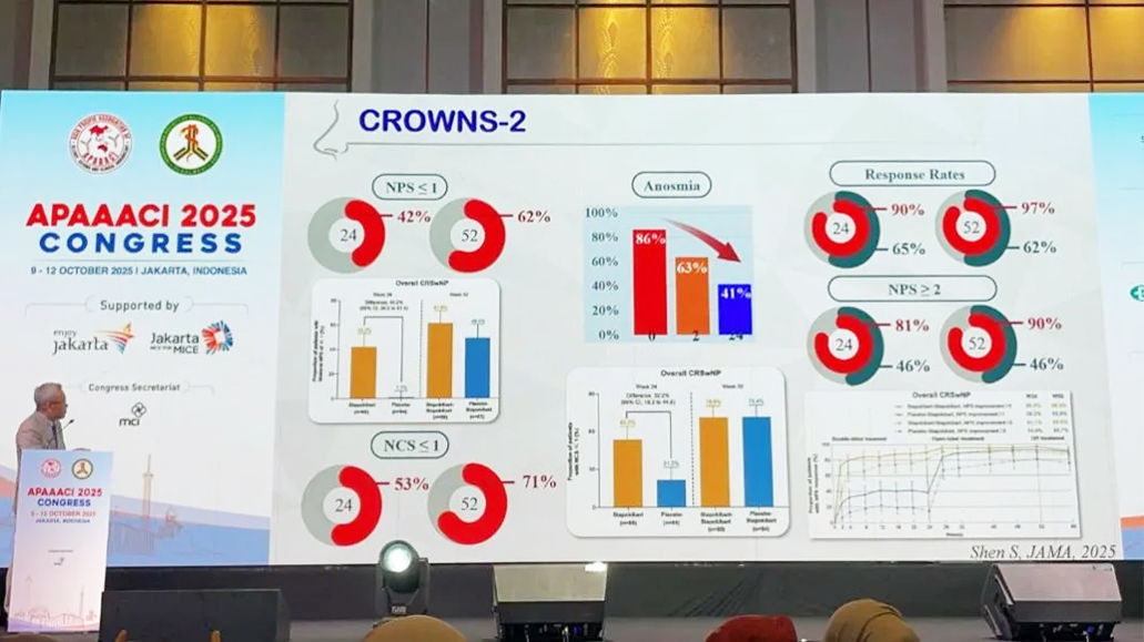 2025年10月9日至12日,由亞太過敏、哮喘與臨床免疫學會(APAAACI)與印度尼西亞過敏與免疫學會(ISAI)聯合舉辦的2025年APAAACI年會于印度尼西亞雅加達隆重召開,本次大會以“多元中的統一:推動過敏、哮喘與免疫學領域的科學與創新——從遺傳學到細胞治療”為主題,旨在融合最前沿的科學進展與臨床實踐經驗,面向臨床醫生與科研人員,推動學術與實踐的深度交流。上千位來自不同國家和地區的專家學者齊聚一堂,共同促進知識分享與跨領域合作,探討應對過敏與免疫性疾病挑戰和行業發展。司普奇拜單抗慢性鼻竇炎伴鼻息肉III期臨床研究數據亮相本次大會,在國際舞臺上展示中國的創新方案,獲得與會專家的廣泛關注。