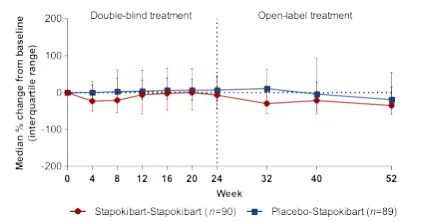 相較基線的中位百分比變化隨時間的變化趨勢